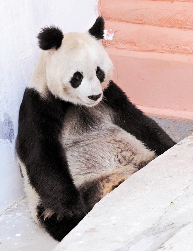 海沧野生动物园 补充营养 熊猫吃窝窝头
