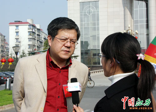 2月11日下午,金飞以一位政协委员的身份,接受了记者的专访。作为一名“新委员”,金飞表示要好好向“老委员”学习。(江西网记者 邱辉强 摄)