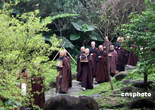 2月15日,台湾法鼓山创办人圣严法师追思法会暨植存在法鼓山举行。图为参加追思法会后,法鼓山众僧与信众及马英九、萧万长等送圣严法师舍利函前往植存区植存。中新社发 陈立宇 摄版权声明:凡注有“cnsphoto”字样的图片版权均属中国新闻网,未经书面授权,不得转载使用。【更多图片】