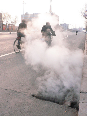 地上冒气(图) 今晚报 《每日新报》官方账号 2009.02.1807:45 关注 一条横穿塘沽新港二号路的地下供热管道漏气了,水蒸气不断从地下向外喷出,并将柏油路面弄出一条长约一米的缝隙。热气随风飘散,挡住了行人的视线,带来了安全隐患。 新报记者 徐燕 手机137xxxxx366的读者 提供现场图片 奖66元