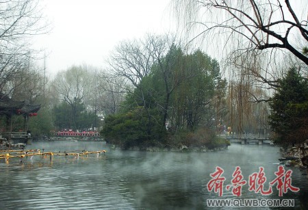19日,空气湿冷,趵突泉公园内再现云蒸霞蔚景观。 戚淑军 摄