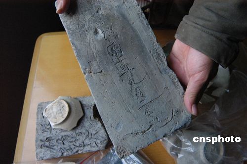 | 图为从宋代造纸遗址出土的宋代方砖。中新社发 骆晓飞 |