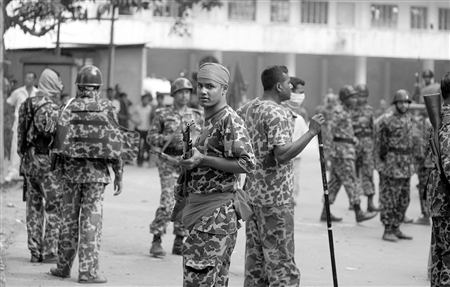 孟加拉国步枪队位于首都达卡的总部25日发生哗变,100多人被暴动士兵扣为人质。政府随即派兵包围事发区域,双方发生交火。暴动士兵代表与政府举行谈判后,于26日晨开始缴械。