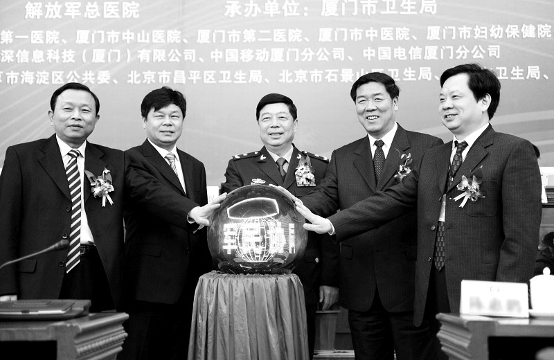 上午,由厦门市人民政府、解放军总医院共同主办的国家“十一五”科技支撑计划项目 “军民协同共建医疗服务示范工程·厦门示范区”启用仪式在厦门市人民会堂举行。解放军总后勤部副部长兼解放军总医院院长秦银河,科技部副部长杜占元,厦门市领导何立峰、潘世建、叶重耕等出席了项目启动仪式。