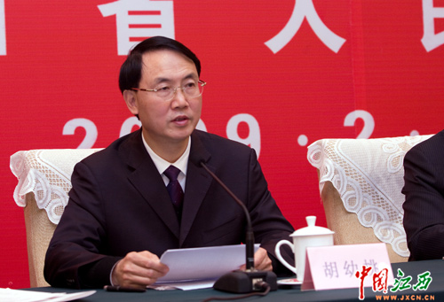 省长助理胡幼桃出席新闻发布会并讲话。(江西网记者 邓小勇 摄)