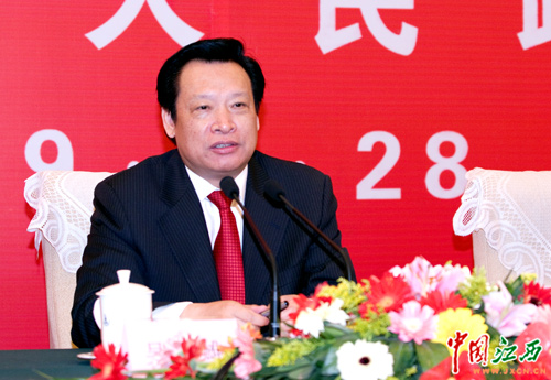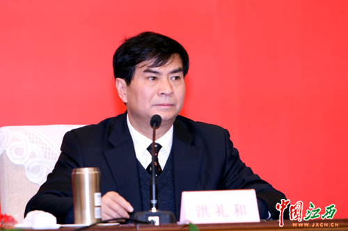 副省长洪礼和出席新闻发布会并讲话。(江西网记者 邓小勇 摄)