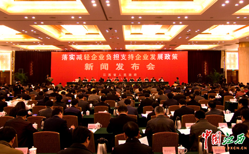 2月28日,江西省“落实减轻企业负担,支持企业发展”政策新闻发布会在南昌召开,图为新闻发布会现场。(江西网记者 邓小勇 摄)