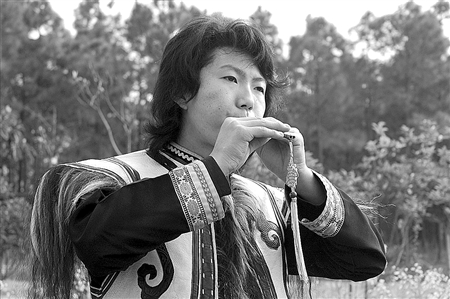 “羌笛何须怨杨柳,春风不度玉门关”,这是盛唐诗人王之涣《凉州词》里的名句。从上周末开始,绵阳市民可在游仙区老龙山上的农家乐里,近距离体味王之涣笔下低回幽怨的羌笛。昨日,在该农家乐一株落英缤纷的樱桃树下,身穿羊皮坎肩的黄景和正在练习羌笛演奏。瘦高的个子,略显褐色的黄皮肤,尽管只有18岁,但作为北川羌笛的唯一传人,他浑身上下透露出一股成熟羌家汉子的味道……