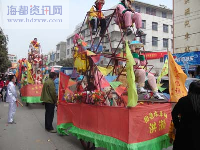 72岁的林德从老先生介绍说,自明代开始,洪濑就有踩街的习俗,每年春节一过,清明之前,一定要搞几场踩街,一来热闹,二来驱邪。洪濑又叫十九都,分有4个境:树德境、蓬莱境、古廍境、福庆境,蓬莱境是都主,每年都由蓬莱境先巡境,昨日轮到树德境。