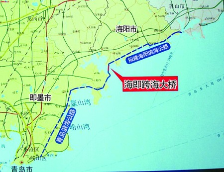 海阳与青岛、烟台、威海的直线距离分别是104公里、90公里和109公里,基本处于居中位置。海阳至即墨跨海大桥是山东省滨海公路海阳段的重要组成部分。跨海大桥和滨海公路建成后,海阳至烟台、青岛、威海更加便捷,其中海阳到青岛、烟台的距离都将缩短为一个小时车程以内。海阳市交通局工作人员告诉记者,以前去青岛需要一个半小时,大桥建成以后,从海阳只需40分钟就能到达青岛的五四广场。
