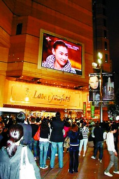 上周末,香港市民驻足观看户外屏幕上的电视采访画面。