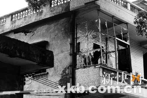 | 昨日,一名男子疑自制炸药引发爆炸,导致房屋受损。新快报记者黎湛均/摄 |