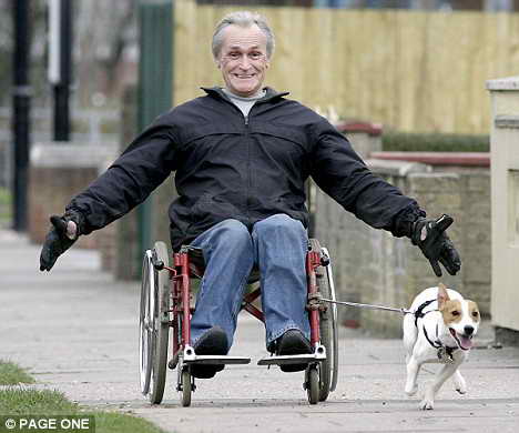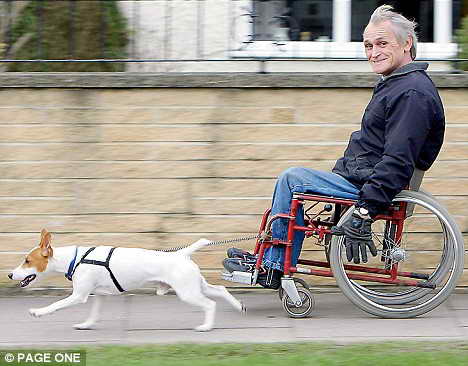 英国残疾者训练一只宠物犬拉轮椅(组图)