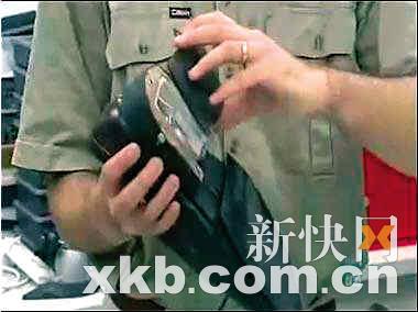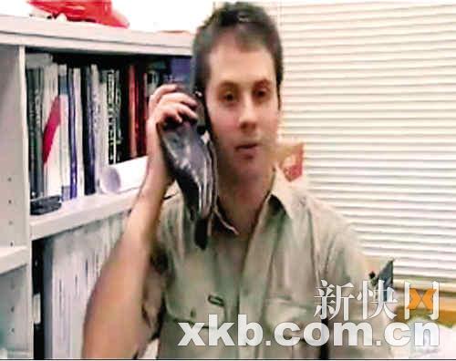 | 斯蒂芬示范使用"鞋子手机"。 |