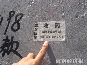 3月2日上午,记者根据海口华发大厦附近的一则“医疗IC卡换现金”的广告,拨打对方电话。对方称只要有医疗IC卡且卡内有钱,就可以兑换现金,直接“套现”要收取40%的手续费,如果是药店购买指定的药品,他们将按照购药款的60%把药品回收。对方同时指定,除保健品以外的降糖(压)药、治疗脑梗塞、治疗肝炎、抗肿瘤等类的珍贵药品才可以“套现”。[1] [2] 下一页作者: