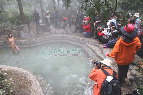今天早上,还在浓雾环抱中的安宁森林温泉迎来了一群特殊的客人,一个来自台湾的摄影团队和云南本地的人体模特将在这里进行一个主题为“人与自然、和谐共融”的人体摄影艺术创作。据了解,本次活动也是云南第一次户外动态人体模特艺术拍摄。