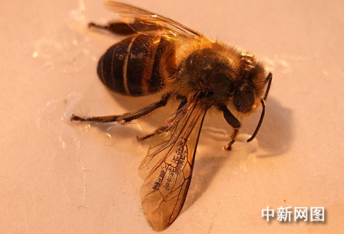 图:台湾微雕家蜜蜂翅膀上写金庸小说语句 中国新闻网 中国新闻网官方账号 2009.03.0913:58 关注 台湾著名微雕家陈逢显最近在一只蜜蜂标本的翅膀上写下了金庸武侠小说《神雕侠侣》中的一句话“过儿吾爱,我在绝情谷底,小龙女笔”十四个微小字。图为作品。中新社记者 陈立宇 摄