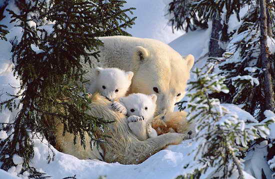 安迪-鲁斯称:“母北极熊会躺在一些小树上,北极熊幼仔会爬在它的身上,与它玩耍。看到这一切使我感到很美好。母北极熊对它的幼仔非常温柔,总是用自己的体温来防止它们受冻,容忍幼仔咬它的耳朵。”(周翔)