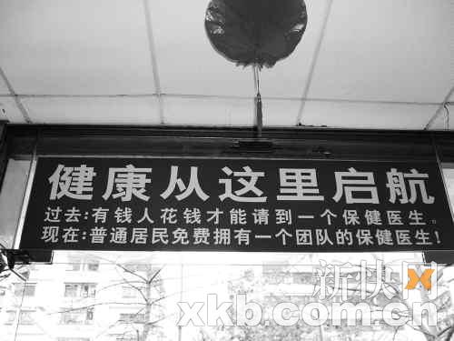 “过去,有钱人花钱才能请到一个保健医生。现在,普通居民免费拥有一个团队的保健医生!”一走进岭南社区卫生服务站大门,门楣牌匾上一行醒目的绿色标语就深深地吸引了前来服务中心看病的群众的目光。