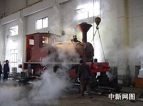 中新网杭州3月9日电(记者龚读法 实习生金斌)日前,在杭州市滨江区的上海铁路局公务机械段钱塘江基地里,一辆复古的蒸汽机车下线并进行试运行。据了解,这是中国近50年来首辆新造的蒸汽机车,原型为台湾第一辆蒸汽机车“腾云号”,预计在2009年3月初运达台湾并正式投入运营。
