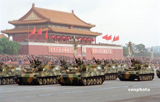 资料图:一九九九年国庆阅兵式。 中新社发 钱兴强 摄