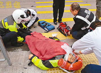 现场消息称,警长倒地后已全无反应,救护员替他除下头盔,将他头部稳固后,由另一辆到场的救护车送往广华医院抢救,证实他被胸骨插入肺部,延至上午11时47分不治。