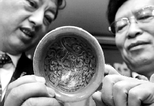 大观铭文牡丹纹碗(简称大观碗)是宋代耀州窑烧制的一种特供宫廷使用的茶具,因其雕刻有“大观”字样而绝无仅有。碗口直径约10厘米,器形类似斗笠,釉色纯正,碗内雕刻有美丽的牡丹、荷叶等图案。数年前,国家文物局在海外发现了大观碗。2002年,国家文物局将其征集回国。昨日,国家文物局将大观碗交由陕西的耀州窑博物馆收藏。“这个宝贝是无价的!世界上仅此一个,属于一级文物。”国家文物局官员这样说。陕西省考古研究院研究员禚振西说:“在我国陶瓷史上,目前发现带有纪年铭文的瓷器只有耀州窑生产过,但在历次考古过程中,仅发现了一些残片,从来没见过一个完整的刻有年号的瓷器。”据《华商报》