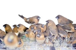 记者看到,这种鸟黄褐色羽毛,腹部和嘴下壳为白色,体型比成人食指约长一点,在笼子里跳得很欢。据老板娘介绍,此鸟叫“十姐妹”,野生的,主要吃稻谷。从三月初开始,就有很多市民买这种鸟去放生。