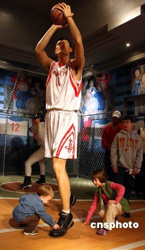 中新社纽约三月十八日电(记者 李静)NBA火箭队中国球员姚明的蜡像十八日首次亮相纽约杜莎夫人蜡像馆,成为该馆的新“热门景观”。