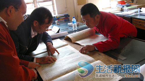 冯德林老人(左)发现新地图将楚雄州禄丰境内的星宿江少绘了一段