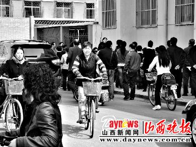 迎泽街小学门前,汽车、自行车、行人交错穿行