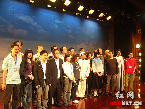 红网论坛版主易鹏等十几位网友成为该剧的特邀观众,并与毛泽东特型演员合影留念。
