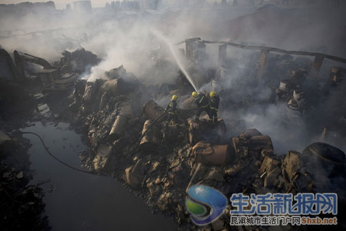 昆明小板桥纸厂大火:一夜烧掉3000吨纸 新报记者受伤