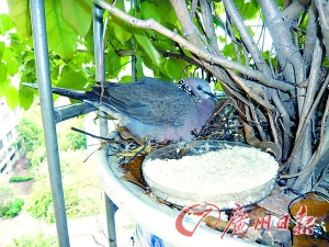 本报惠州讯 (记者秦仲阳 通讯员邱慧乐摄影报道)昨天,以“保护鸟类资源,繁荣生态文化”为主题的惠州“爱鸟周”活动爆出一件新奇事:一向在山林安家的斑鸠居然接连在惠城区被发现,而且还有飞到居民阳台安家生蛋的。