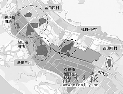 这四个城中村将整体搬迁至原社排小布村所在的一片集中区域。对于村民来讲,整体搬迁将壮大村集体经济,优化原村民的居住环境。搬迁后空出的用地将分别作为盐田港用地,保税物流园区用地及普洛斯项目用地。而港口物流仓储用地将和搬迁后的安置用地分隔在明珠道两侧,居民的生活环境将得到极大改善。