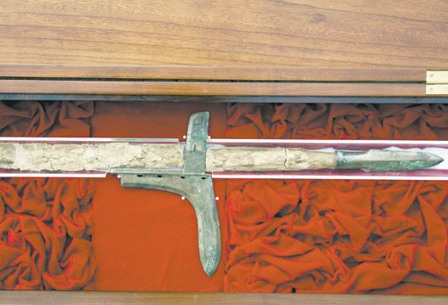 这把长达2.87米的青铜戟是迄今国内发现的唯一一件保存最完整的戟。本报记者 赵争耀摄