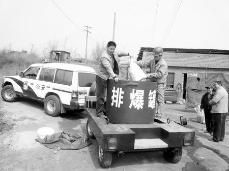 | 民警开着排爆罐车将爆炸物品运出并进行了销毁 |