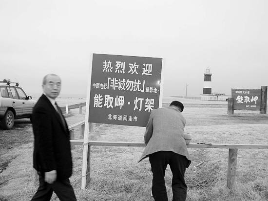 记者在北海道采访时发现,《非诚勿扰》在北海道可谓家喻户晓。在北滨火车站等拍摄地,都插上了“中国电影《非诚勿扰》拍摄取景地”的中文标牌。3月19日下午,记者在北海道网走市能取岬看到,当地旅游局的两位职员正在设置“中国电影《非诚勿扰》摄影地”的中文标牌。网走市政府观光部门负责人田口彻先生说:“这个电影为我们带来了很多中国游客,我们正准备迎接更多来自中国的客人。”