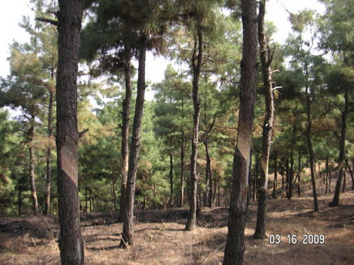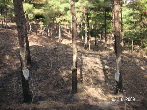 河南桐柏县万亩松林遭遇野蛮割松脂(组图)