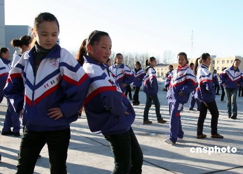 图:哈萨克族舞蹈“黑走马”走进学校课间操