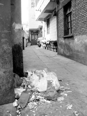 垃圾成堆积压在巷道中。