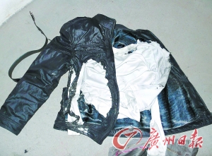 | 林先生所穿皮衣被炸穿一个大洞。 |