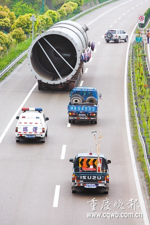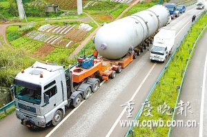 “为让吸收塔安全出境,市交委至少召集相关单位开了近20次专题会议。”负责运输的重庆公路运输集团有限公司大件分公司现场负责人王京渝说。