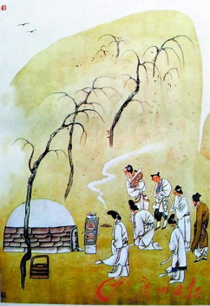 扫墓回来之后,大部分人都感到有些疲劳,这时,应该洗个澡,换一换衣服。按古代习俗,在进家门之前要跨火盆,古人认为这样可以驱除阴气。