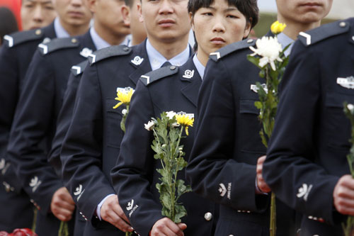 清明来临之际,云南省公安厅政治部和省公安民警英烈基金会昨日在杨其江墓前,举行了“颂英烈、寄哀思、弘正气、激斗志”祭奠杨其江等公安英烈的活动。云南省部分厅机关民警、云南警官学院学生、云南公安消防部队、昆明市公安局、富民县公安局和几十名学生代表等200余人参加了仪式。