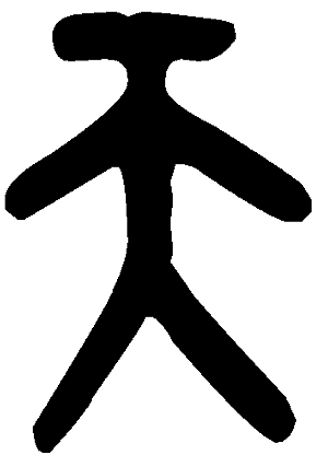 “天”字的造字就是由“大”和“一”组成,“大”字就是人的正面像,是指人的身体。