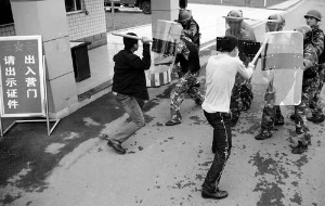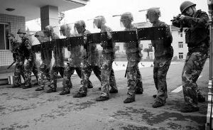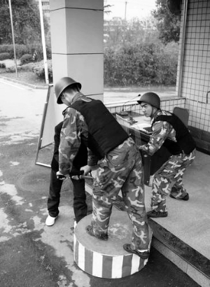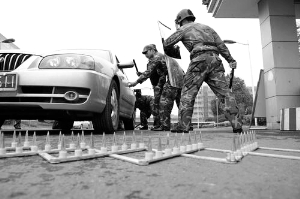 4月3日上午,成都军区驻蓉某分部独立营门外,一场哨兵反袭击、哨位反冲撞演练正紧张进行着,这是该分部多措并举加强营区岗哨安全的一个剪影。