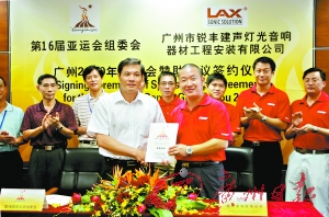 据了解,自去年北京奥运会后,锐丰音响成功签约广州亚组委,成为2010年广州亚运会“扩声系统产品及服务供应商”。与北京奥运会上只负责几个场馆的音响设备供应不同,在明年的广州亚运会上,使用锐丰LAX品牌音响产品的场馆将有几十个。