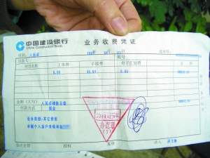 市民张小姐说,由于贷款买房需要出具银行账户的流水单,她于4月2日下午来到福田区景田路的中国建设银行红荔支行打印自己账户的流水单。到了银行她才知道,自动查询机可以免费打印账户流水单,但却没有银行的公章;在银行柜台打印出的流水单可以加盖银行的公章,但要收取手续费。由于张小姐需要打印的流水单跨年,所以要收费40元。无奈之下,张小姐最终还是花了40元才拿到了一份盖有银行公章的流水单。
