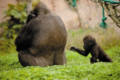 半个月后,“阿斯特拉”开始让宝宝学爬、学走路。不过,从来都只让它在自己的手臂可以够得着的范围内,一旦发现一丝异常情况,就会把它抱住。这时的大猩猩宝宝也已经睁开了眼睛,不过,它瞧周围的游客、绳索等玩具及爸爸、妈妈、阿姨都是没有眼神的,饲养员也不知道它究竟在看什么。饲养员也已经识别出大猩猩宝宝为雄性。